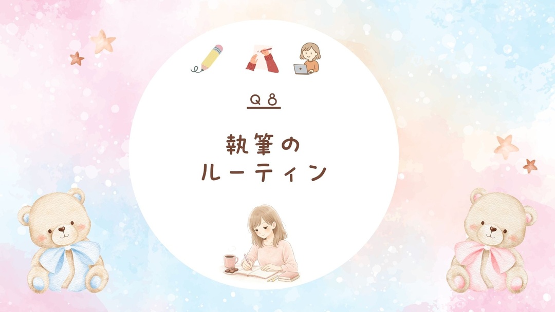 作業する時間帯という意味でも特に決まったルーティンはないのですが、子どもたちが学校や幼稚園に行っている午前中と、寝た後の夜の時間に書くことが自然と多くなりますね。