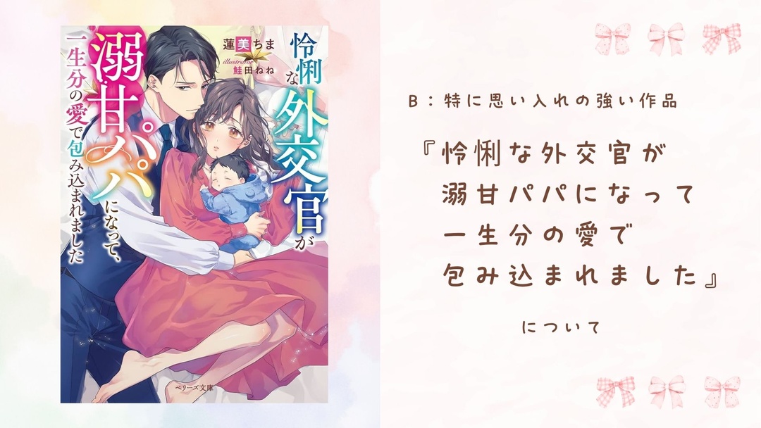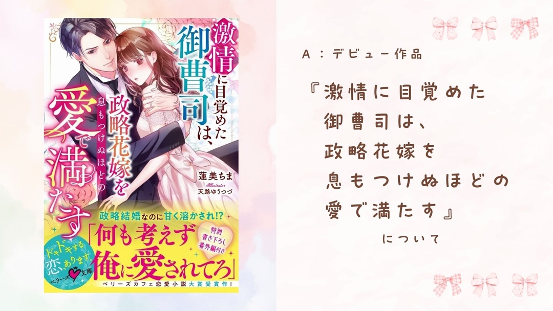 「デビューするならベリーズで出したい」と思っていたので、結構本気でベリーズ文庫らしさとはなにかを研究しました。