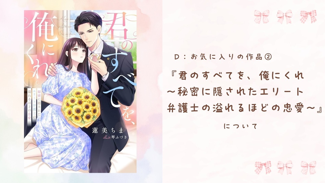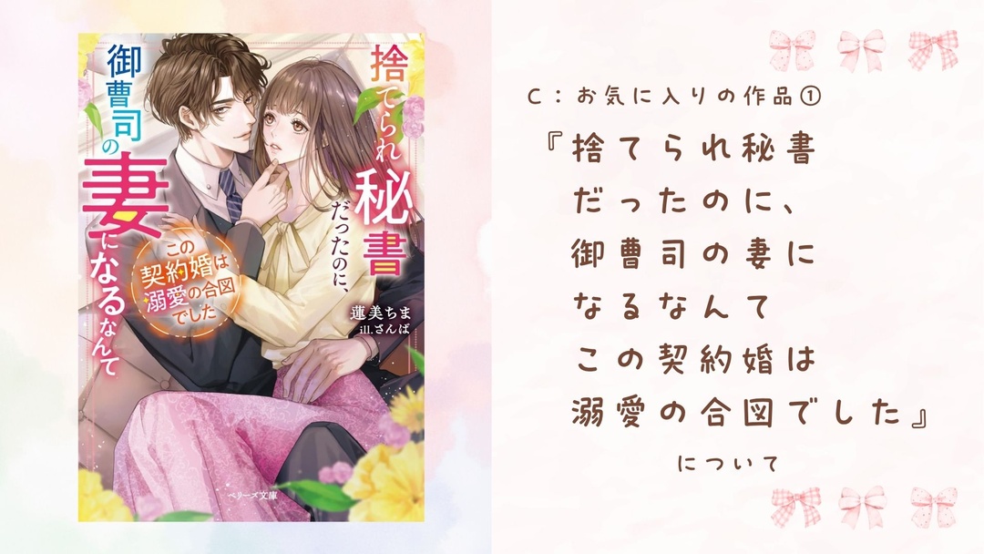 文章を読むのが苦手な方も、女性向け恋愛小説は漫画を読んでる感覚とか、恋愛ドラマを見てる感覚で読めるので、ぜひチャレンジしてほしいです。