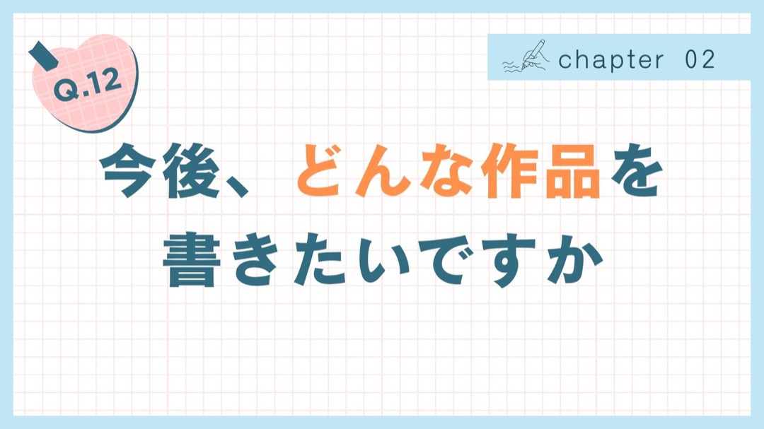 私自身、読むのも家族愛とか友情がメインのお話のほうが圧倒的に多くて。そういう、恋愛が中心ではない作品を書いてみたいなと思っています。