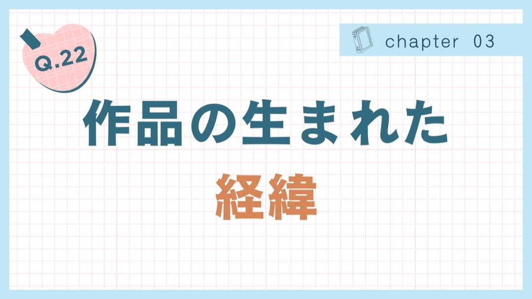 これも、言われて初めて気づきました。読んでくださる方でそこまで見てくださっている感想は初めてで、すごくありがたかったです。