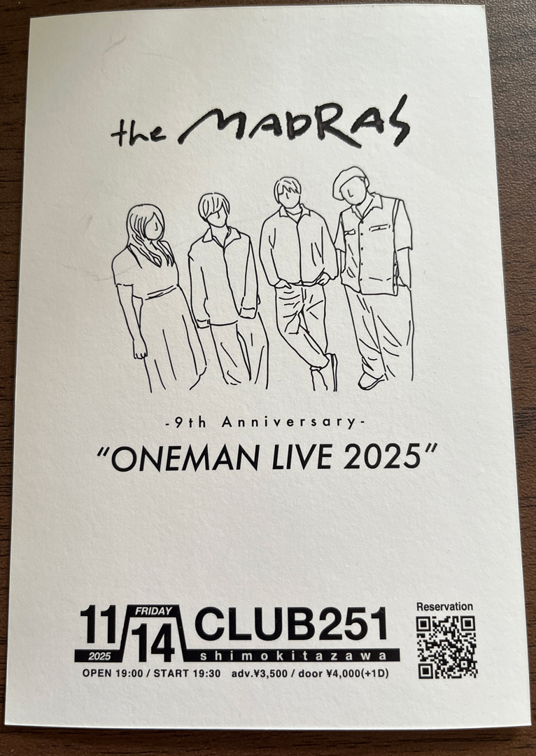 2025年11月14日(金)、the MADRASのワンマンライブが開催された。