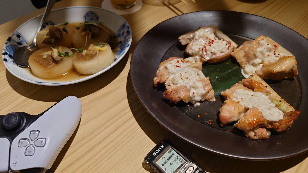 あ、会話がエキサイトしているあいだに届いたこの地鶏を焼いたやつ、めっちゃ美味しいからお2人もぜひぜひ!