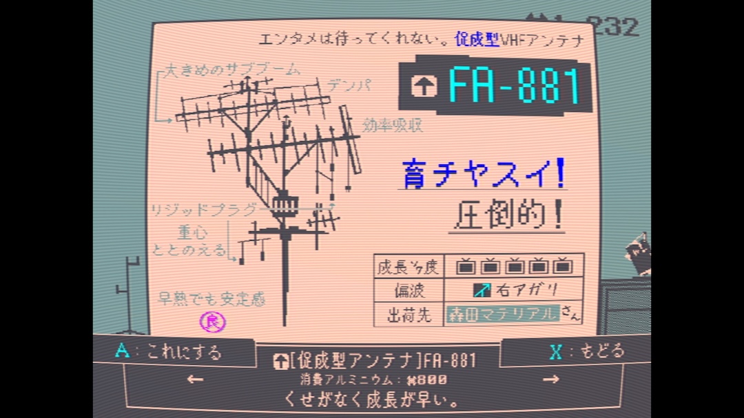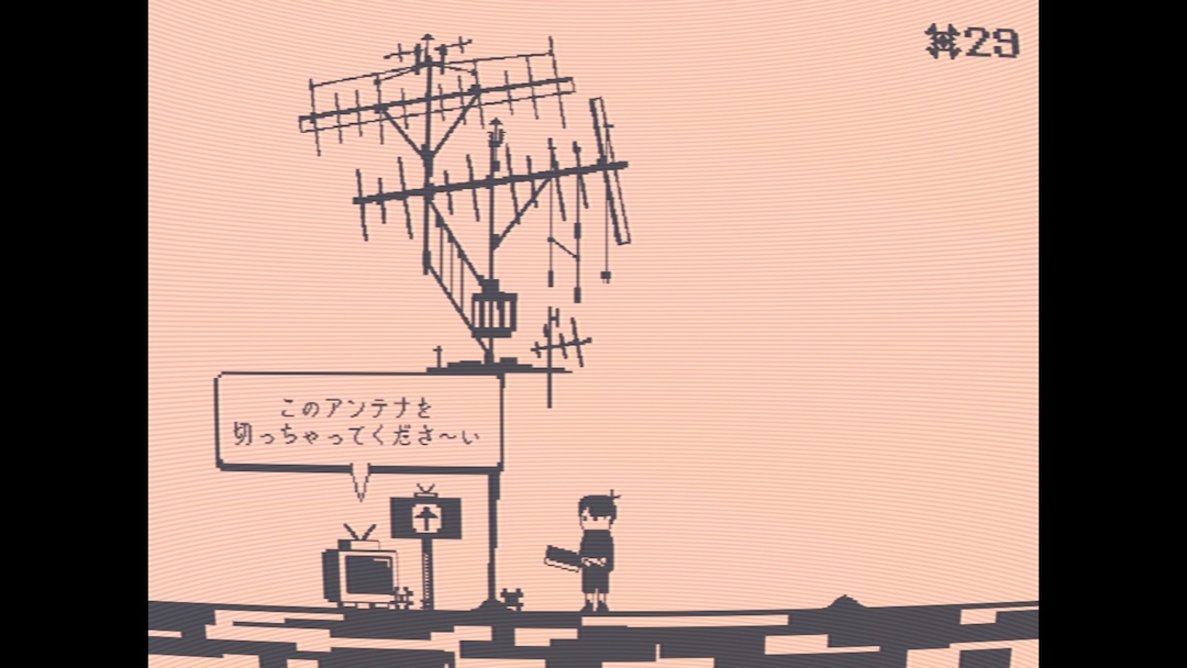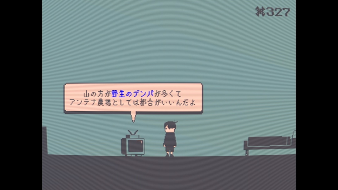 アンテナの木を切り倒して出荷すると、木の内部に蓄えられたデンパが一時的に放出。それを受信することでテレビ番組を見れます。テレビ番組は少年の過去に関わる内容から、全然関係ないバラエティ番組まで様々。90年代の懐かしい人気番組を思わせる番組が多く、当時を知ってるとニヤニヤしちゃう。もう随分前に終わったんだよなぁと遠い目にもなってしまったり。