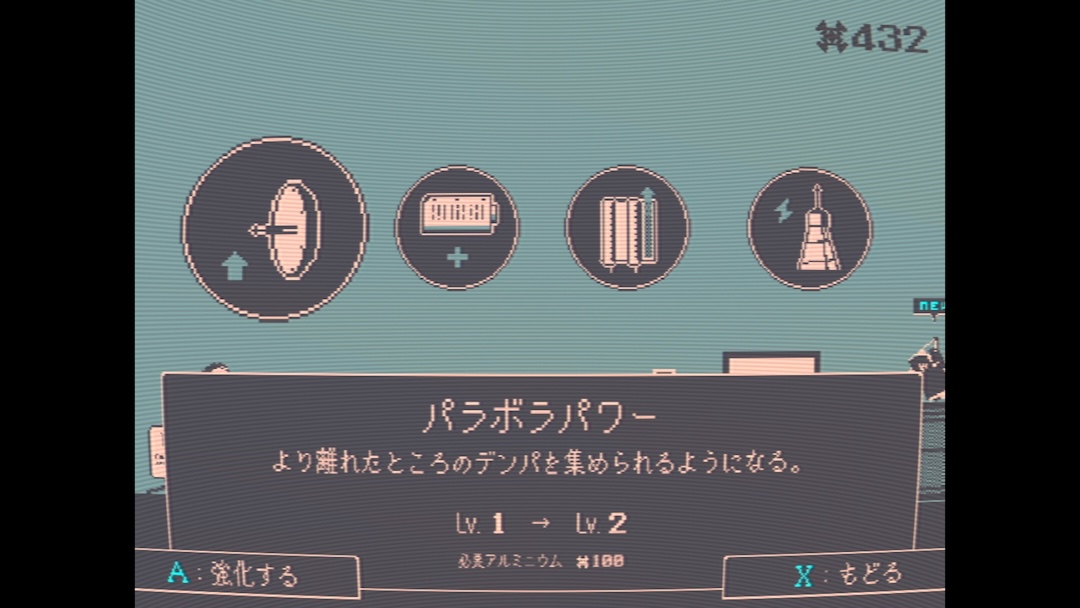 アンテナの栄養となるデンパは集めるのに時間が掛かり、装置のバッテリーが切れると、その日はそれ以上集められなくなります。アルミニウムを消費して道具を強化していけば作業効率アップ!