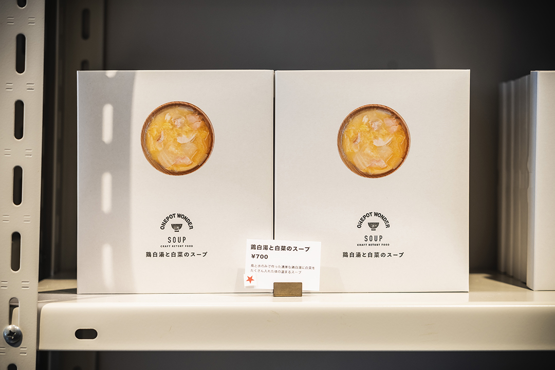中野駅前から歩いて10分ほど。昔ながらの雰囲気がまだ残る、新井薬師商店街の中にあるグローサリーショップ「Groceries Market IPPUK」。一歩足を踏み入れると、棚に置かれたスタイリッシュなレトルトフードが目に付きます。このレトルトフード、「ONE POT WONDER」が誕生したのは、新型コロナウイルスの流行がきっかけでした。