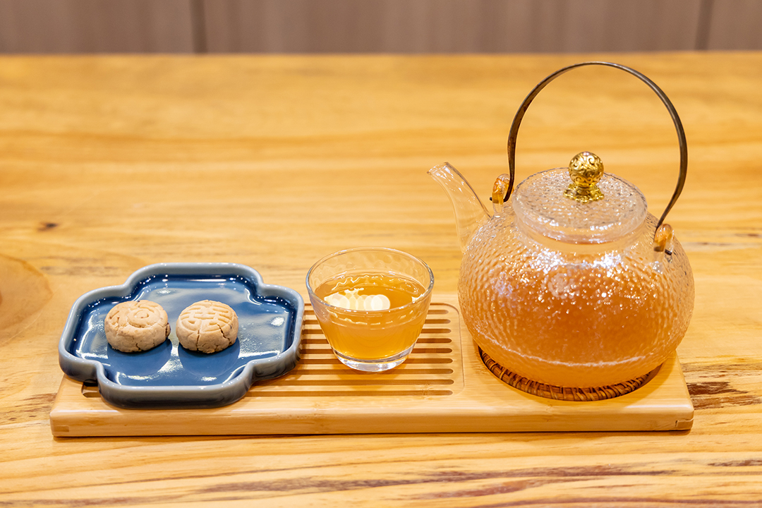薬膳ハーブティーとともにいただけるデザートたちも、からだが喜ぶ食材のみを使用。定番のクッキー「フーシ」は、小麦粉・卵・白砂糖不使用のグルテンフリーデザート。ほろほろとした食べ応えと、香ばしい香りが特徴です。