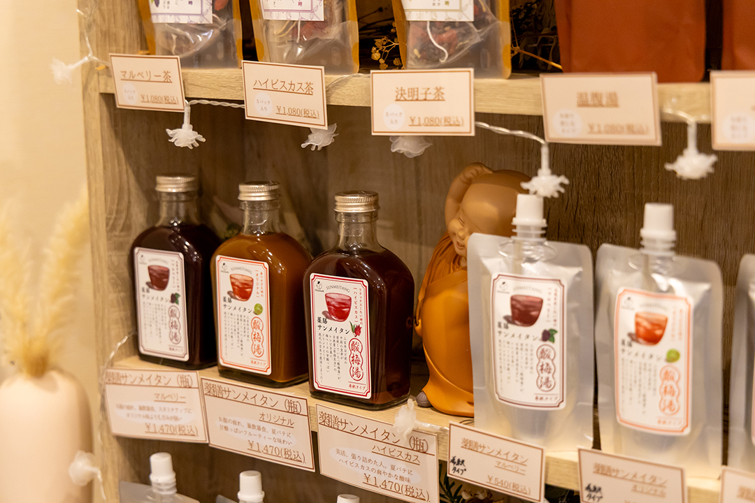 自宅で薬膳を楽しめる物販コーナー/当初は「サンメイタン」という名前で販売していたそうですが、思ったように認知が広まらず「薬膳」を追記。それ以降少しずつ魅力が広まっていったとか