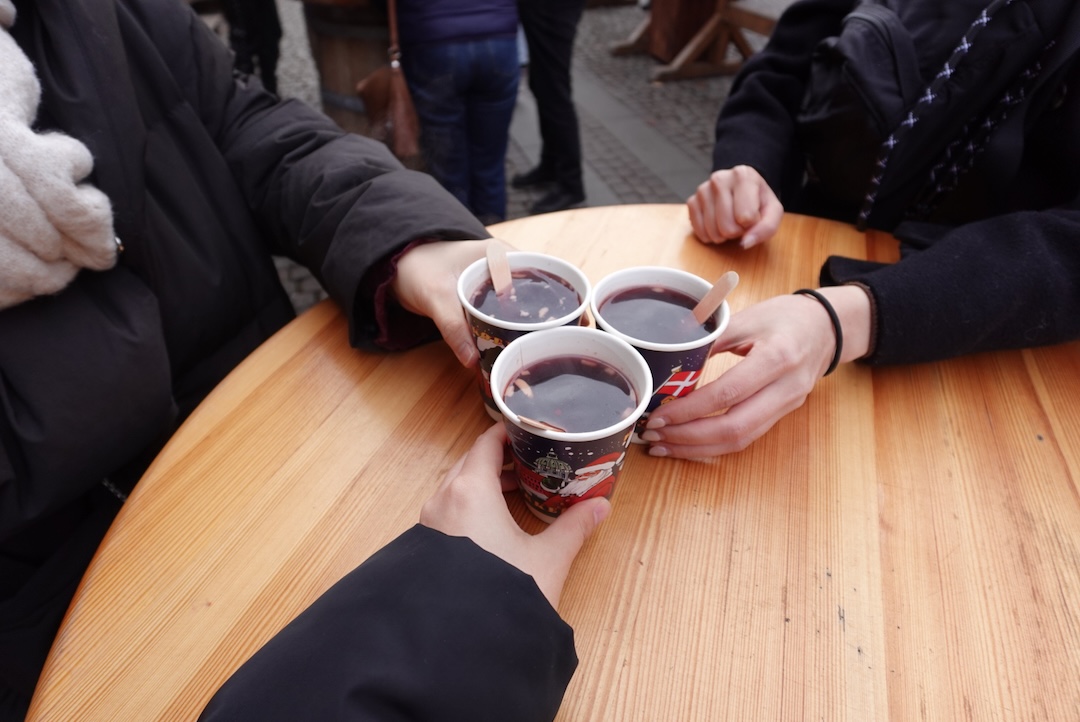 私と友人2人もホットワインを注文。一杯1000円越えと、デンマークの物価の高さを感じる機会にもなりました(汗)。