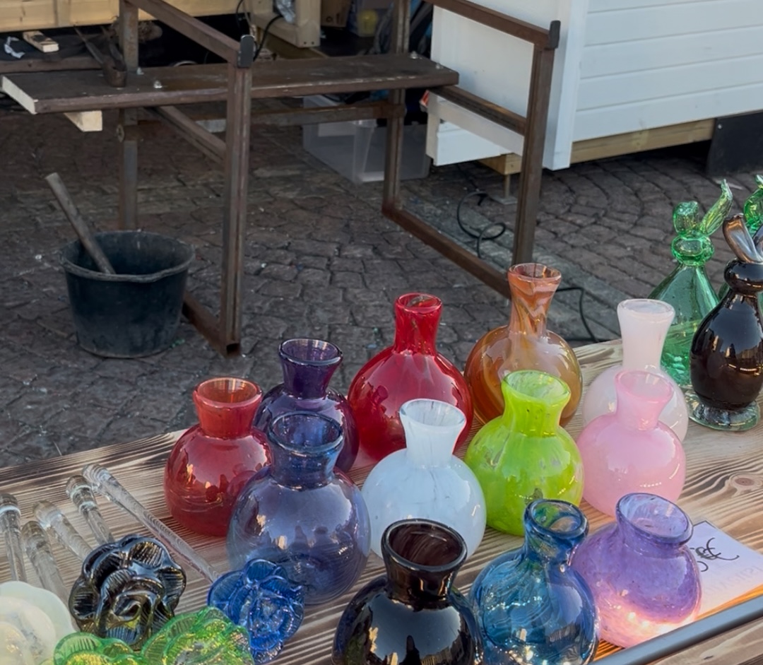 その場で作られる美しいガラス細工は晴れたヘルシンキの空の下に映えます。このようなワークショップ型の出店は、他の地域に見ない光景でした。