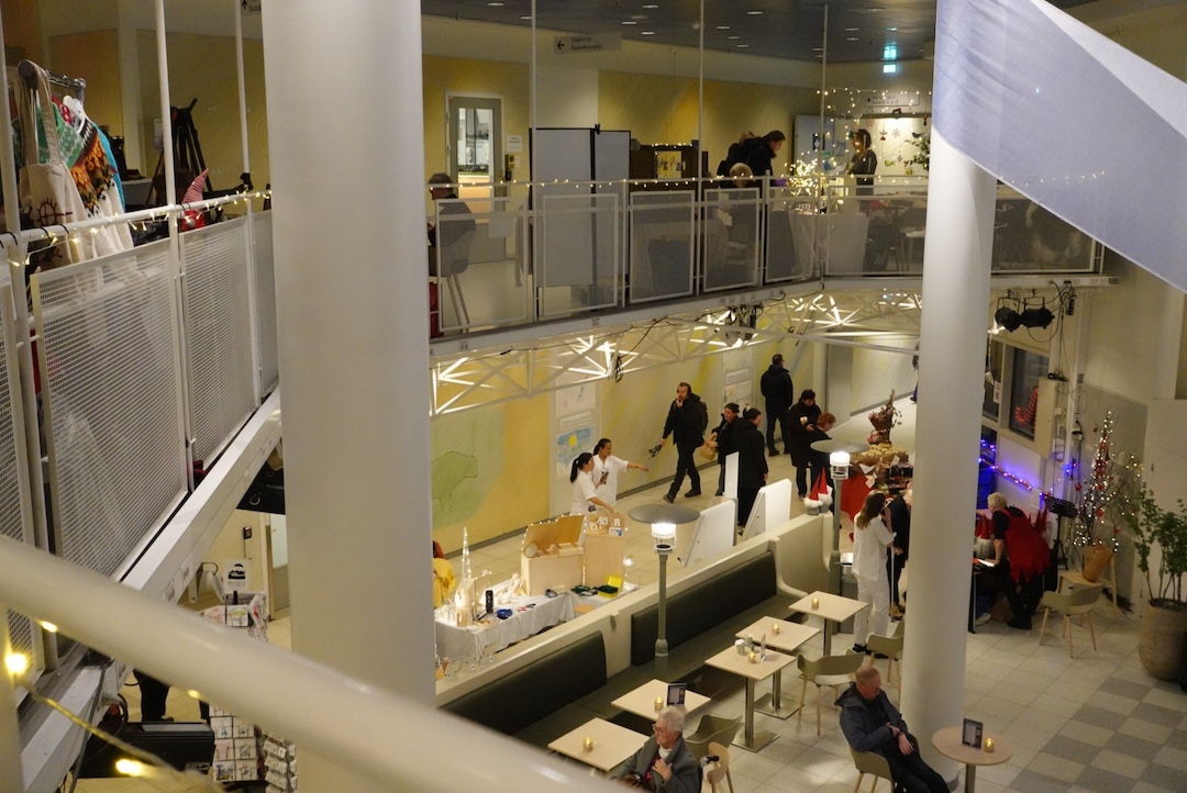 北極圏に位置するこの街では、他の都市のような常設のクリスマスマーケットは見られません。その代わり、平日の夕方や週末にかけて、地域のコミュニティセンターや病院、学校など、日常的に人が集まる場所で小さなマーケットが開かれます。