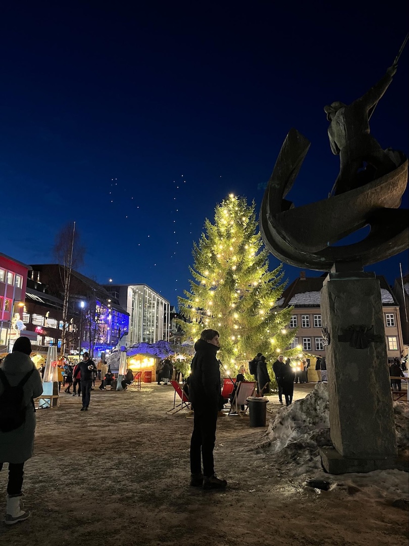 クリスマスの時期が極夜(日中でも薄明か、太陽が沈んだ状態が続く現象)と重なるこの街では、太陽の代わりに人工の光が街を照らします。昼夜の区別がつきにくいからこそ、ツリーやイルミネーションがあるだけで、気分が少し晴れやかになりました。