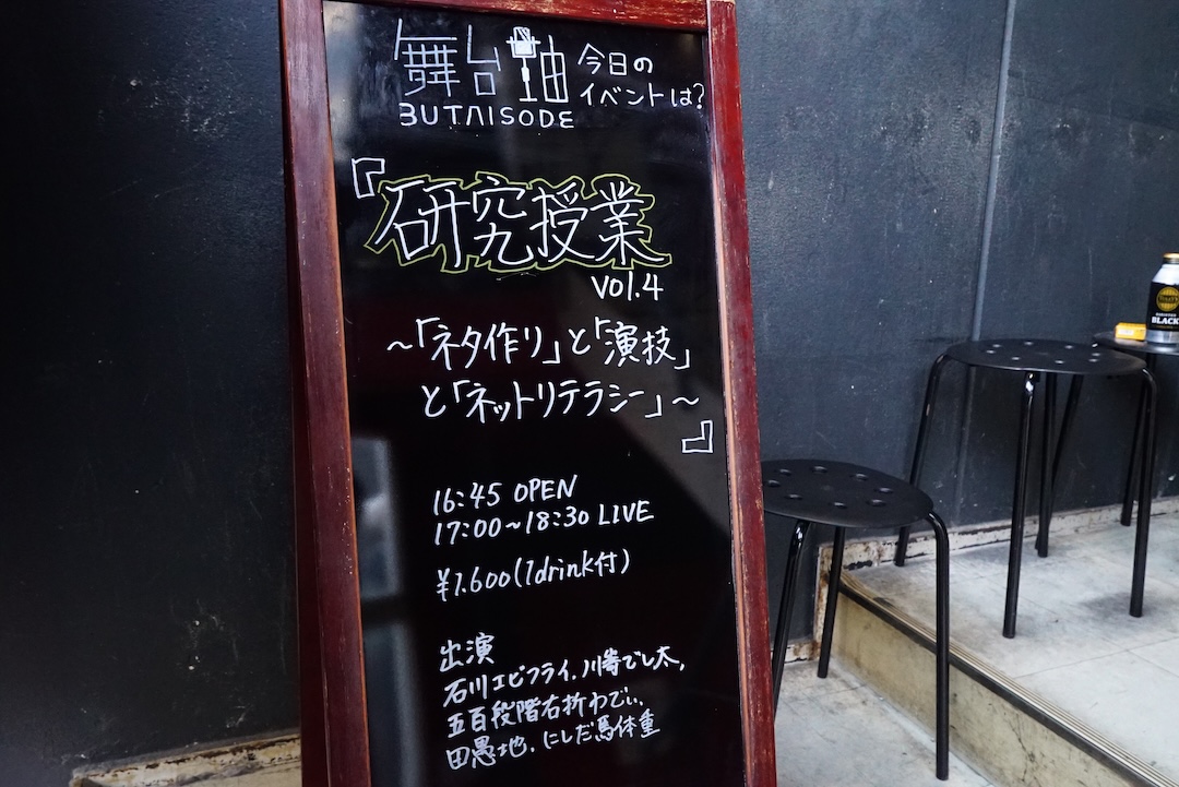 石川エビフライさん主催の芸人向けの授業ライブの立て看板