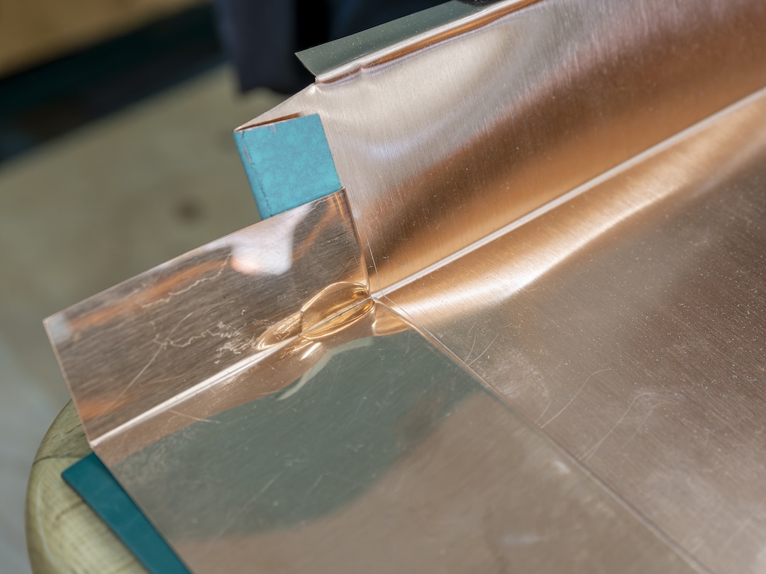 瓦は真ん中に乗ると割れてしまいますが、銅板は端に乗ると折り返しの部分が割れてしまうんですよ。