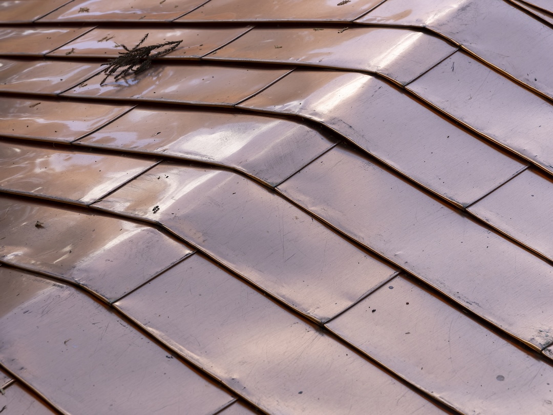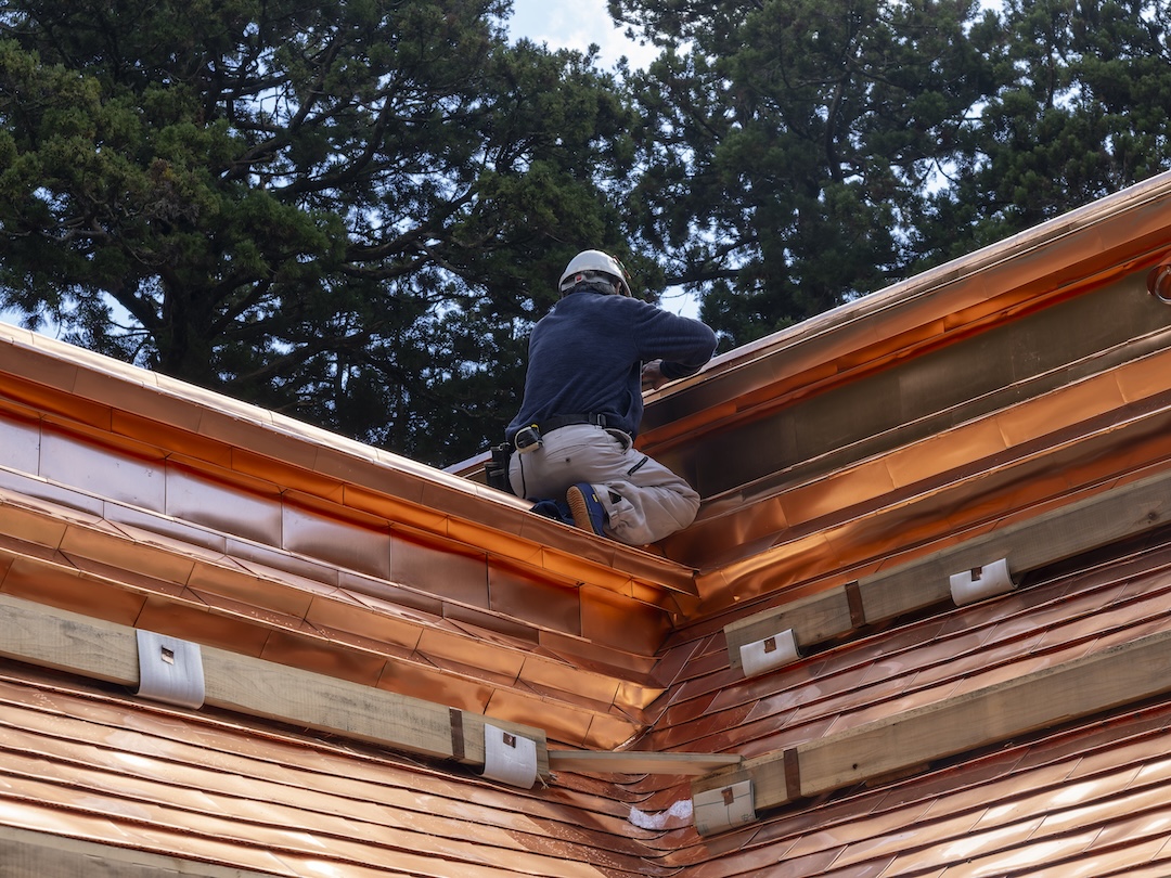 銅板の屋根には歩き方があります。縁ではなく、真ん中を歩いてくださいね。瓦と逆です。