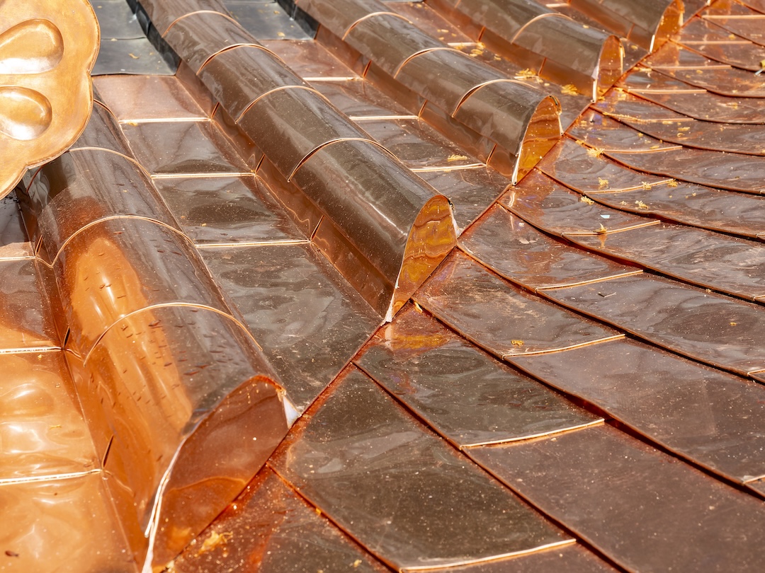 まさに銅板仕事の桃源郷!輝く新品の銅板で葺かれた屋根!