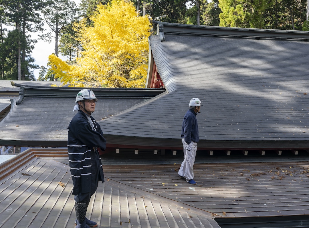 では、神社さんから屋根に上がる許可をもらっていますので、行きましょうか。