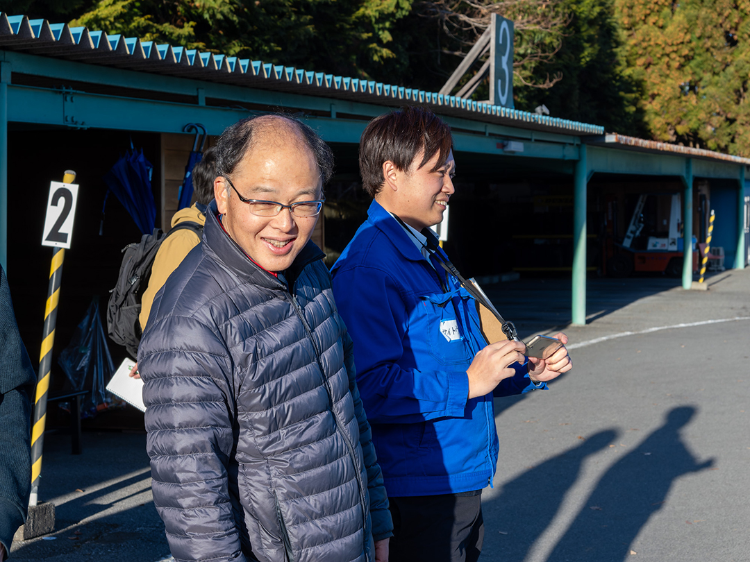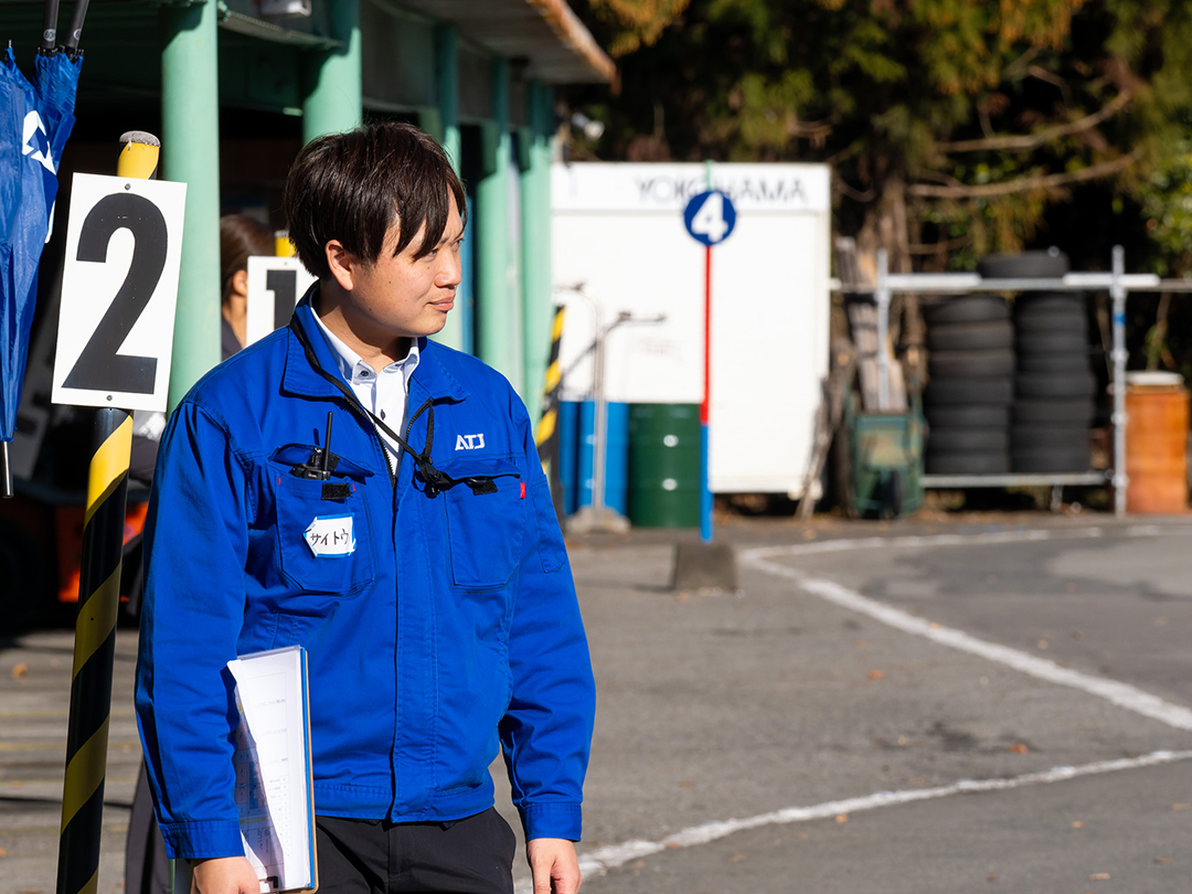 貴重な場所と車両、そして運転教育のプロ3名を今回のツアーに提供したのが、栃木県中部自動車学校です。少子高齢化が進み、ドライバーの総人口が減少していく時代の中で、より社会に寄り添う自動車学校を目指してツアーに参画しました。教官の一人、網代力央さんに話を聞くと、今日が待ち遠しかったと眩しい笑顔。経験豊富な教官ということは一見しただけで分かるのですが、今日はどこか少年のようなワクワク感が滲み出ています。