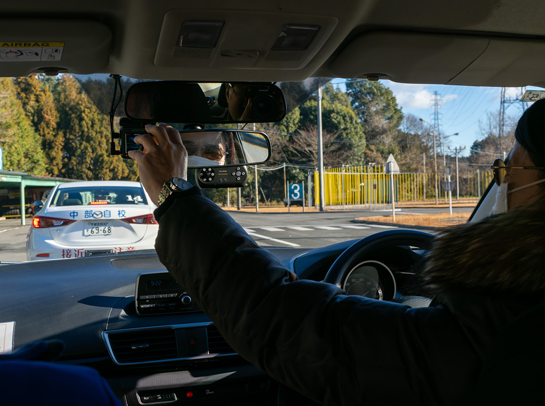 ほぼ見えていなくても、運転前のルーティーンだからとバックミラーを調節するYさん
