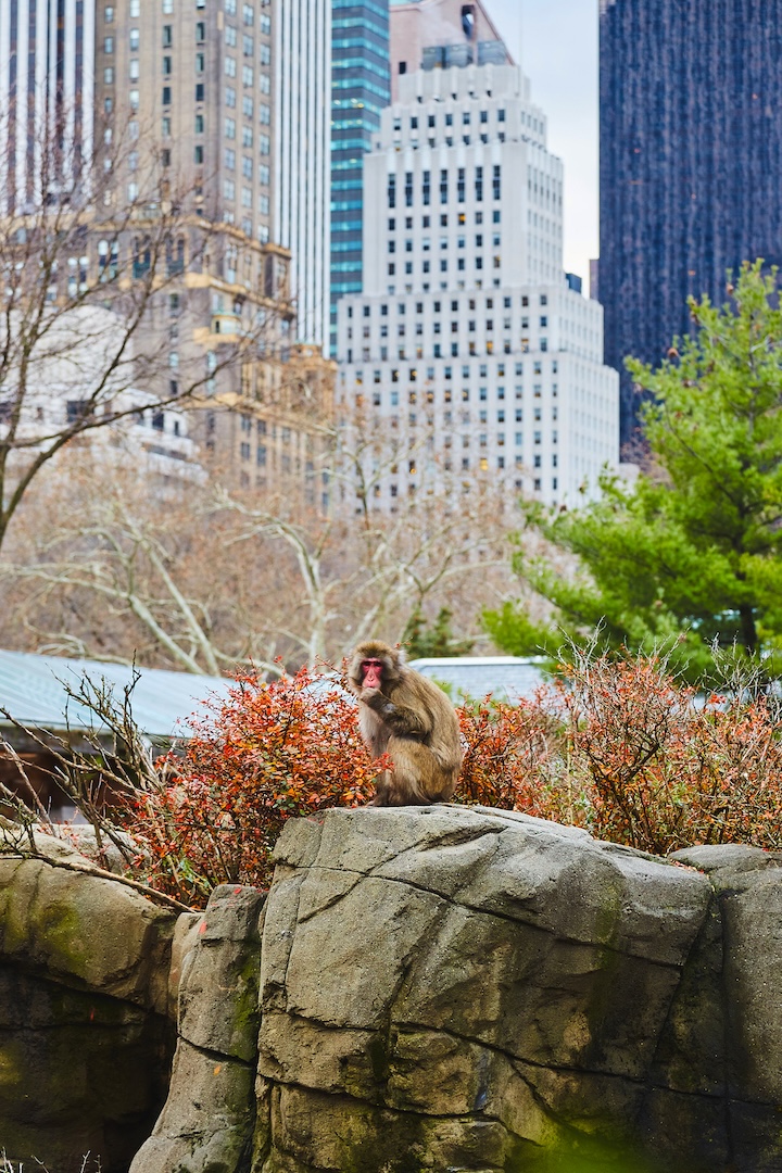 ニューヨークのセントラル・パーク動物園で、マンハッタンの高層ビル群を背景にした猿山を見たときの衝撃がすべてのはじまりでした。“ニホンザルがマンハッタンの摩天楼を背負っている” という違和感と面白さに、写真の可能性が一気に開けた気がしました。猿山の中でこっちをドヤ顔で見てくるサルがいたんですけど、“お互い日本から出てきて頑張ってるな” って言われたような気がして(笑)、思わずシャッターを切りましたね。