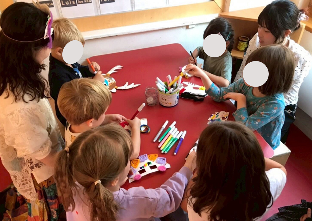 そのあと行ったワークショップでは“日本の夏祭りを体験してもらおう”というテーマで、だるま落としや射的、お面作りなど昔ながらの遊びを用意しました。