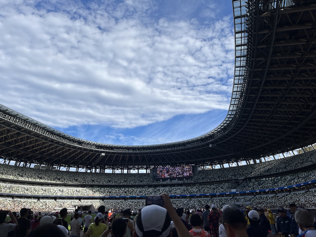 ちょっとだけ寝坊しましたが、前日のうちにゼッケンを付けておいたウェアに身を包み、2日連続で国立競技場へ。
