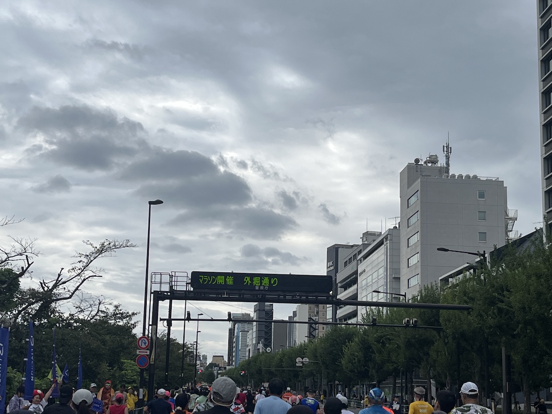 目標タイムが定まっている場合、ペースランナーを目指して走ると良いのですが、同じように考えている方が多いので、ペースランナー付近はもはや壁とも言えるほど大人数での移動になることがしばしば。この日も、4メートルくらいは人が連なっていて、抜かすのもひと苦労でした。