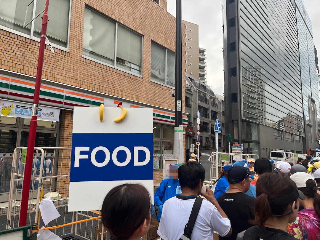 ノロノロと歩いてスタート地点へ。今年のスターターは体操の萱和磨選手だったので、多くの人がカメラを向けているのがわかります。ちなみに私も写真を撮りましたし、何だったらハイタッチをしてもらうために列に並んだりもしました。すでにスタート時間を過ぎているというのに。