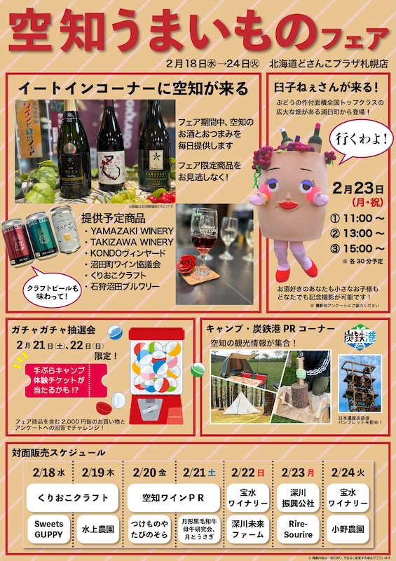【2/18(水)~24(火)】北海道どさんこプラザ札幌店で「発見!そらちのいっぴん 空知うまいものフェア」を開催します