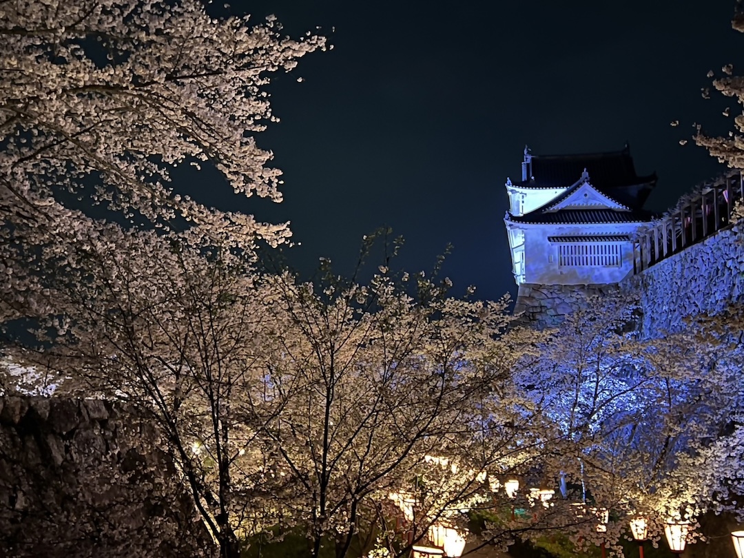 日没後には桜のライトアップも行われ、昼とは違った幻想的な景色が広がります。夜までゆっくり桜を楽しめるのも、このスポットの特徴です。