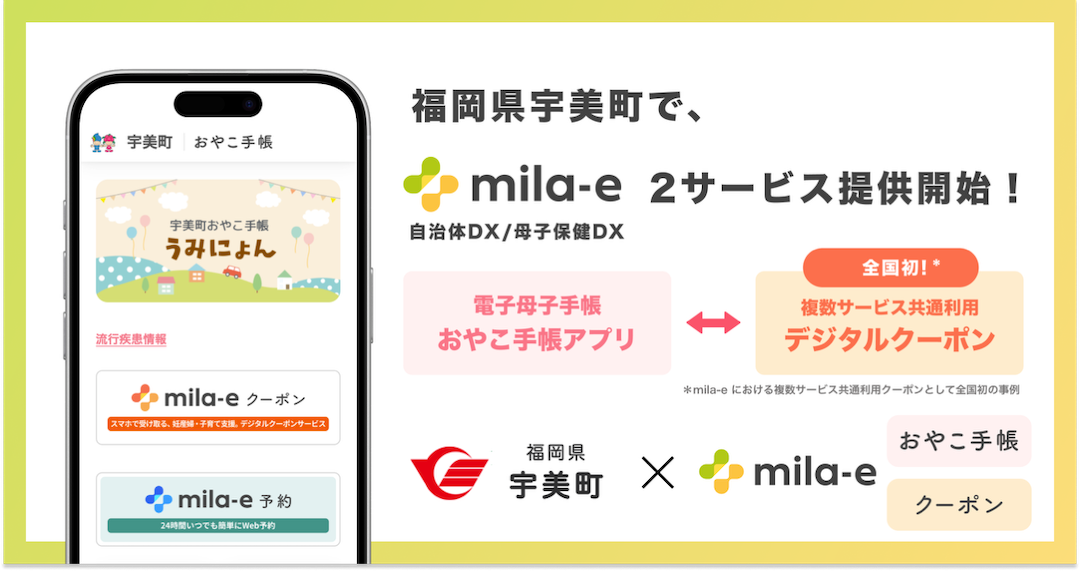 宇美町では、2026年4月1日から妊産婦応援事業を電子クーポン化し、「mila-eクーポン」という新しい仕組みを導入します。