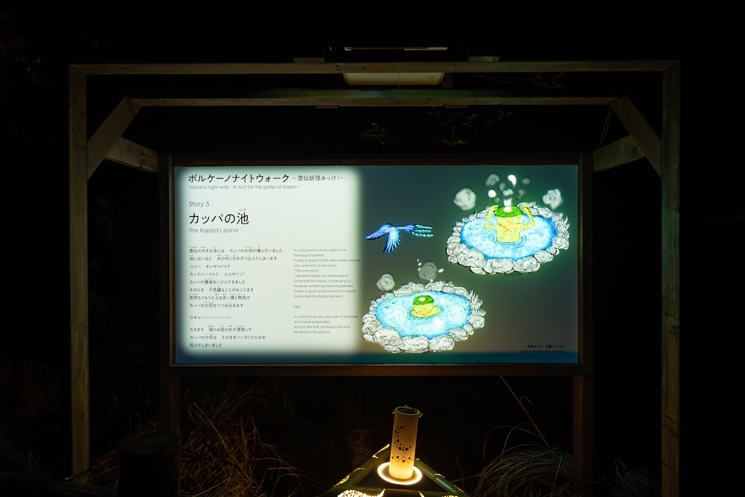 雲仙に古くから伝わる逸話や伝説をもとにした「雲仙妖怪」たちが、夜の闇に姿を現します。いたずら好きのキツネや河童、そして地獄の熱を愛する「地獄猫」たちが、幻想的なデジタルアートとなって私たちの目の前に!