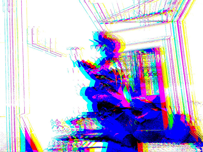 切り抜いた紙を置いて、その上からスプレーを吹きかけることで、色が一部だけにのるようにする技法を使って制作しました。