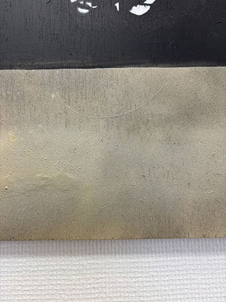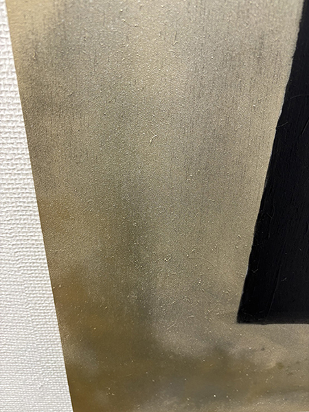 まずは黒を全体的に吹きかけました。そこから神々しい感じにしようと思って、その上から金とグレーを吹きかけたんです。