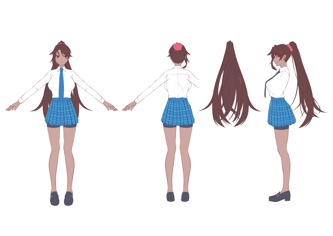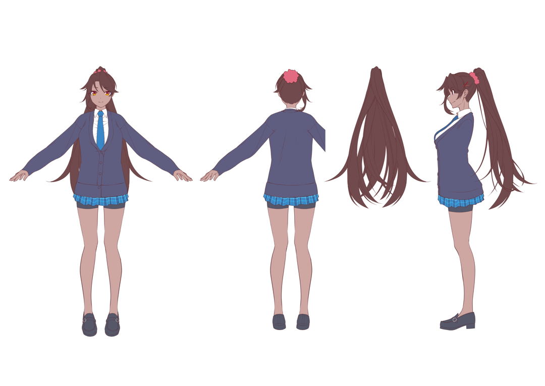 真ん中に座っているのが、今現在僕が描いている燈風夏です。左側のピンクの縦ニットを着ているのが専門学校時代に描いていた燈風夏。右側が初期に描いていたころの燈風夏です。